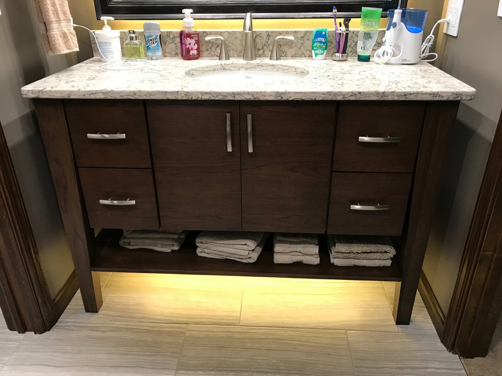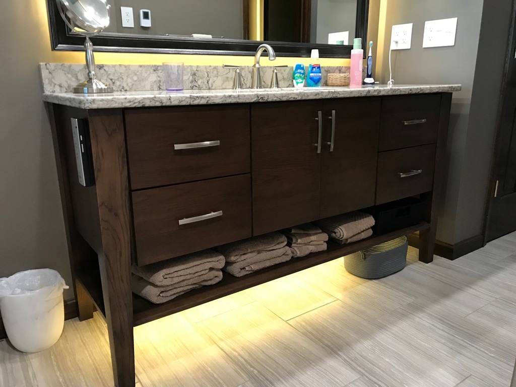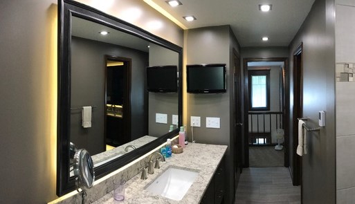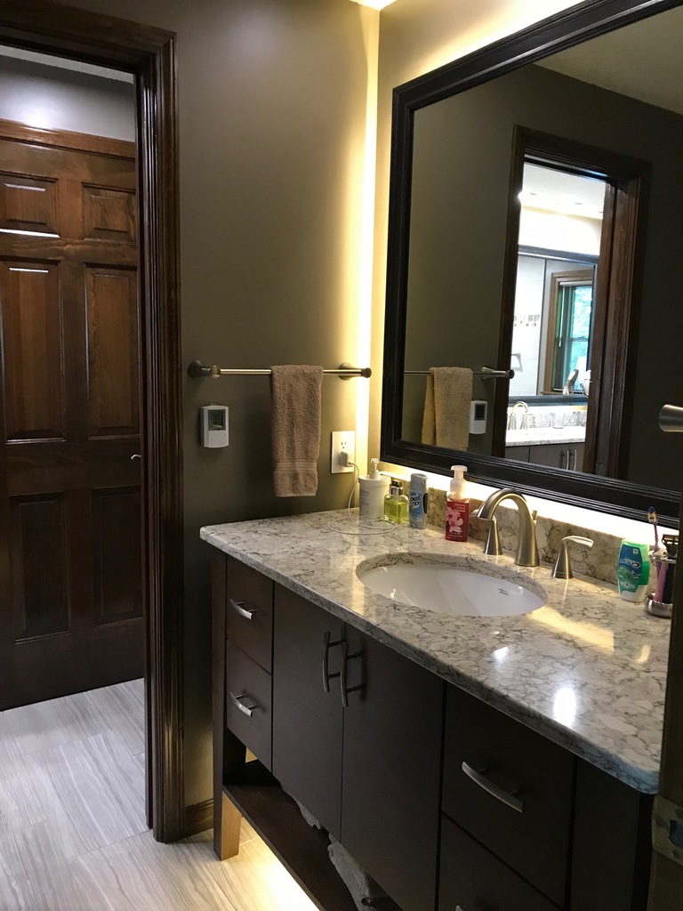 In the spring of 2019, Shawn and Trisha were looking to remodel their old bathroom to create a new look. For their ideal bathroom, we took special care in his requests by featuring a custom made moonstone matte finish shower, upgraded their toilet to a bidet, amish-built cabinetry, quartz countertops, and uniqe lighting. After finishing the final phases of the project, Shawn and Trisha were ecstatic with the results! They loved how Wright Brothers Renovation and Design took the time and care to make their bathroom stand out.